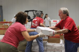 Over 90 volunteers helped sort shipments of supplies, distributed food, cleaning supplies, water and ice and helped serve hot meals at both lunch and dinner. Volunteers also dispersed to homes and properties flooded throughout Madisonville and other hard-hit Northshore areas to help residents with clean-up.
