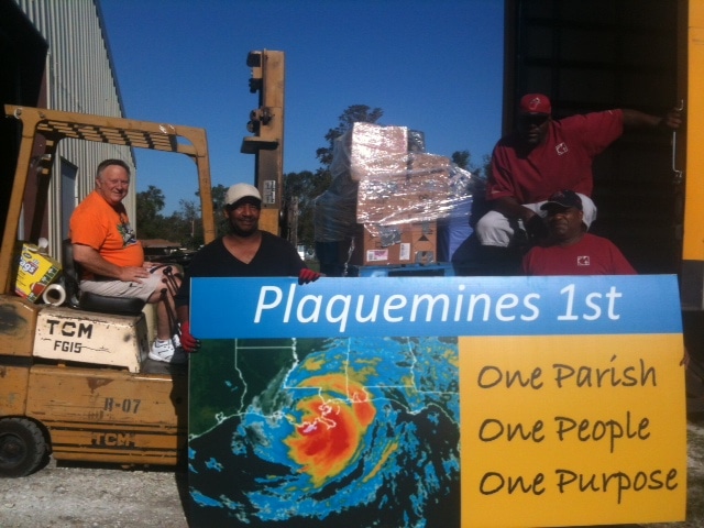 Volunteers, Food for Family Staff, Celebration Church and Second Harvest all collaborating to deliver aid to those affected by Isaac in Braithwaite.