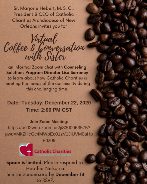 The informal chat will include Counseling Solutions Director Lisa Surrency for a discussion on Catholic Charities’ response during this difficult time.