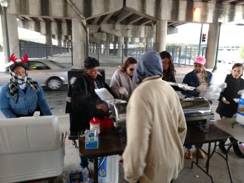 Last month, PACE’s staff did just that. Partnering with Piccadilly, the group served hot meals and distributed goodie bags containing socks, scarves, soap, toothbrushes, toothpaste and other essentials to over 125 homeless men and women in our community.